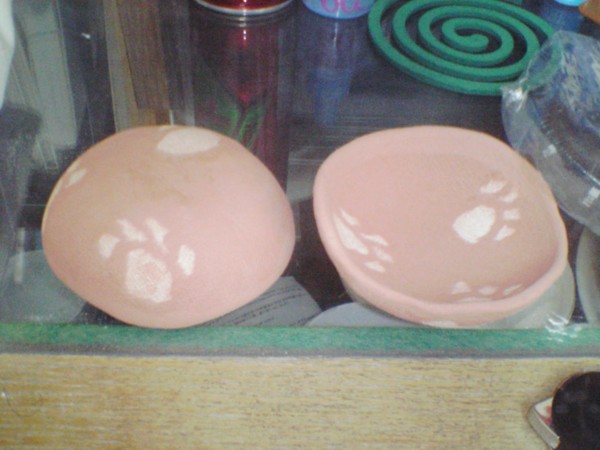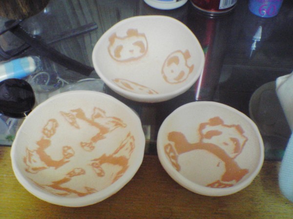 まだ素焼きだけど、足跡のとパンダ柄のお皿。